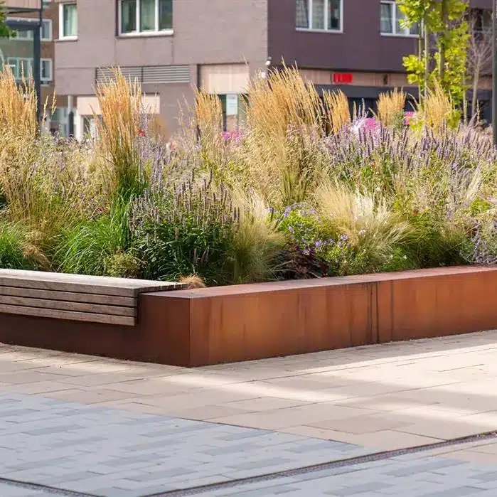 Grâce à la surface caractéristique de l’acier Corten, le mur de soutènement s’intègre harmonieusement aux environnements extérieurs, qu’ils soient naturels ou modernes. Il peut être utilisé seul ou combiné à d’autres éléments de design.