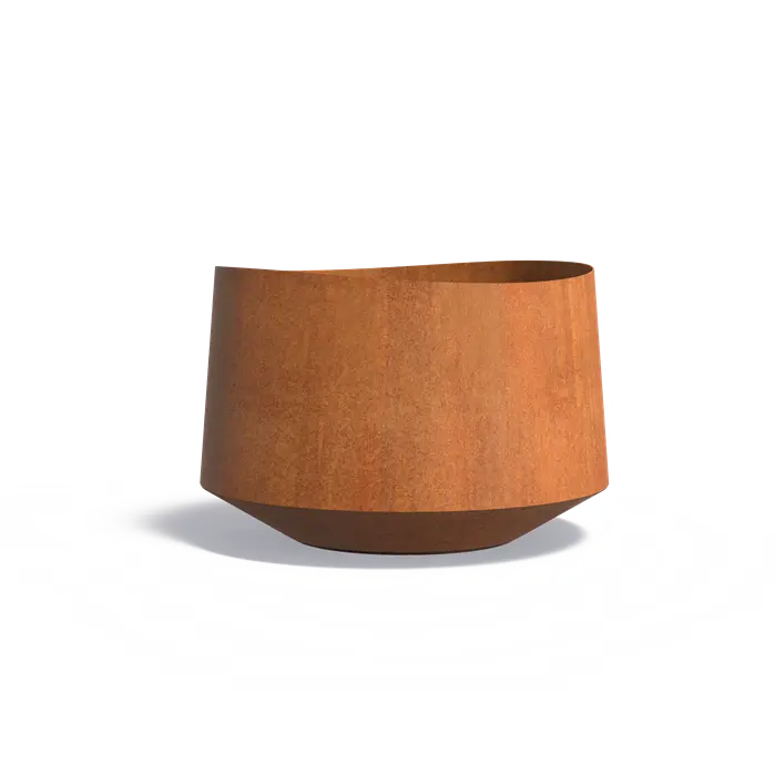 Der VELIS Pflanzkübel aus Cortenstahl zeichnet sich durch klare Linien und einen leicht geneigten oberen Rand aus. Er bringt eine moderne, zugleich warme Note in Gärten, auf Terrassen und im Eingangsbereich in der Schweiz. Im Aussenbereich entwickelt der Cortenstahl eine braunorange Patina, die jedes Gefäss zu einem Unikat macht.